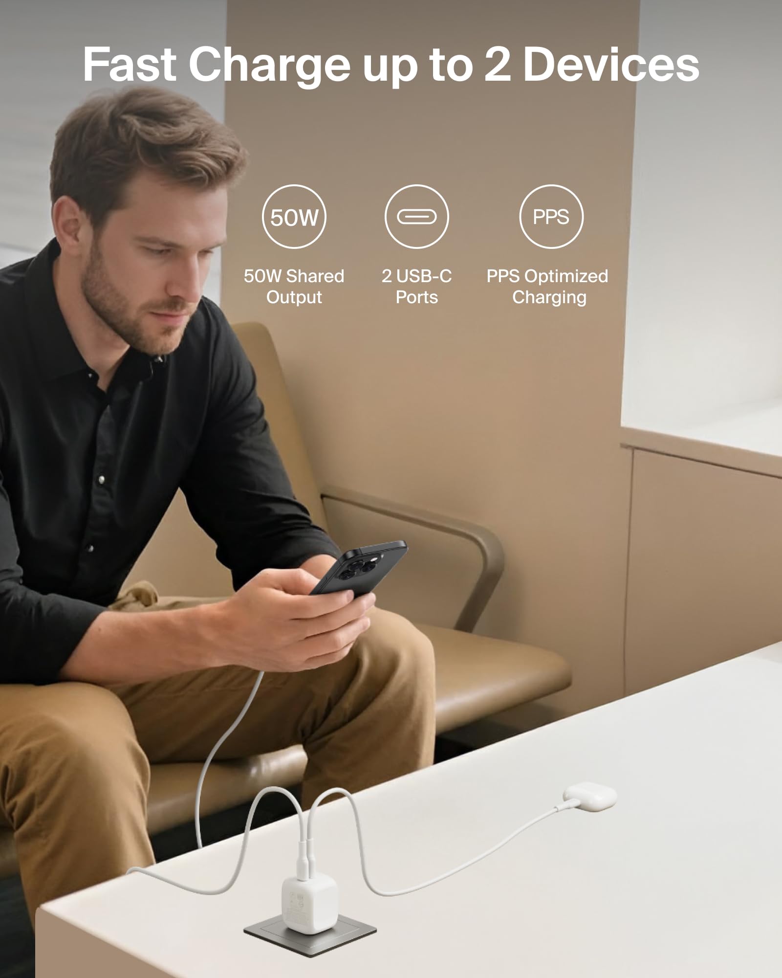 - FAST CHARGING TECHNOLOGY: This 2-port wall charger uses USB-C PD3.1 tech to rapidly charge a Samsung Galaxy S25 Ultra from 0-50% in just 28 minutes.* iPhone 17, Chromebook, MacBook Air 13, iPad Air 13, Pixel 10, and much more also receive a fast, safe charge.