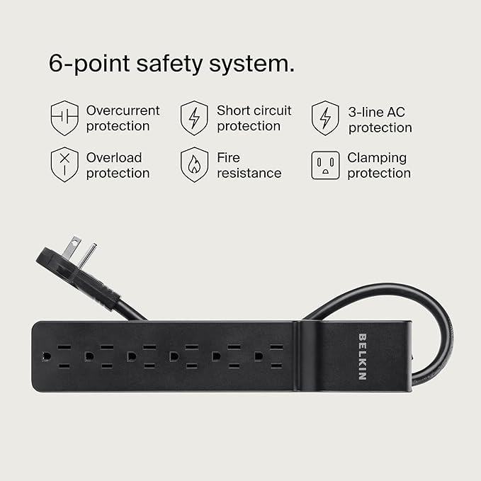 - SAFEGUARD YOUR DEVICES & APPLIANCES: This Belkin surge protector has a 600-Joule energy rating providing a reliable surge protector to protect any meeting room, office, personal workstation, or entertainment center