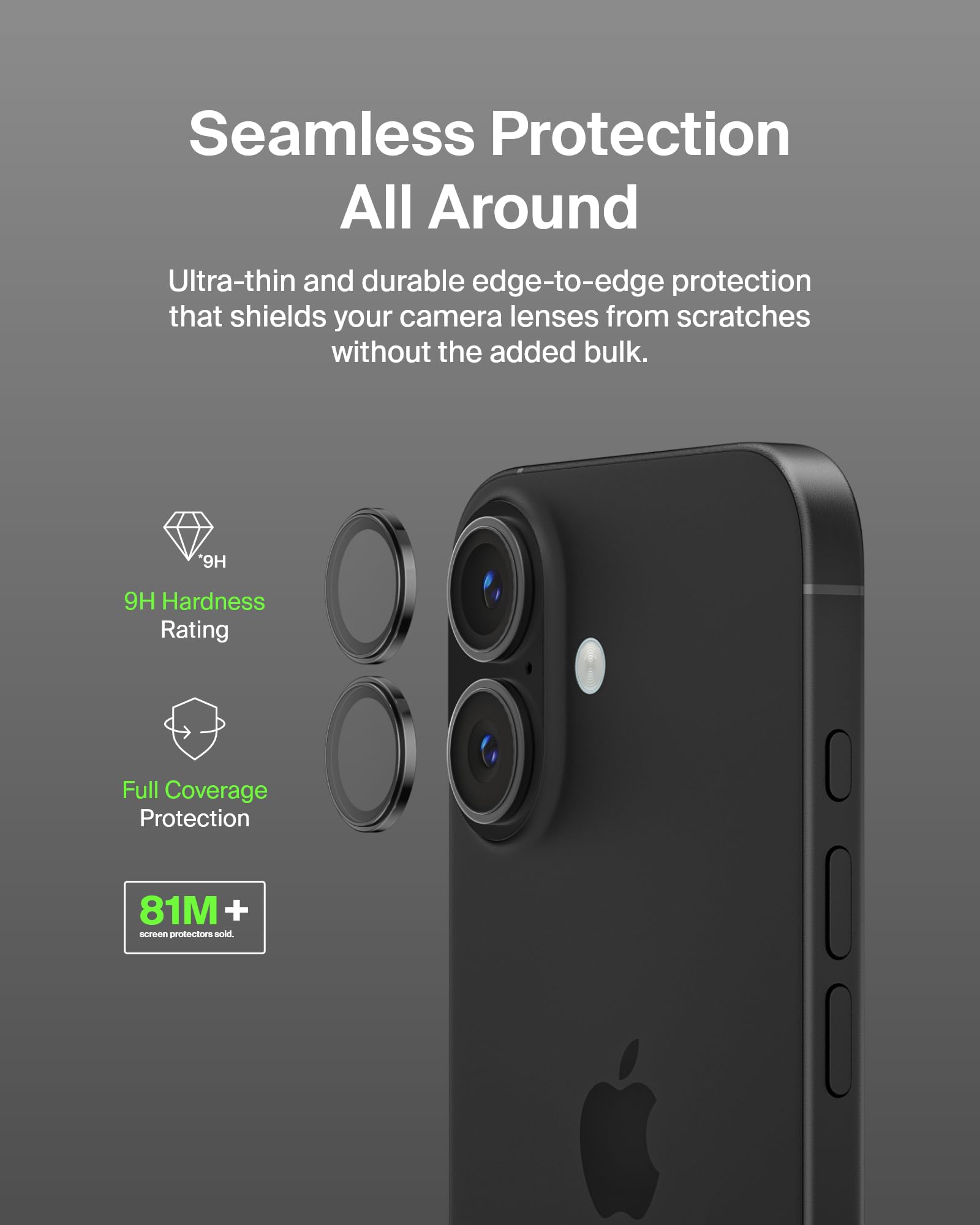 Belkin ScreenForce TemperedGlass Camera Lens Protector for Apple iPhone 16, 16 Plus - Case-Compatible Tempered Glass Lens Cover, Apple iPhone Accessories - 2-pack