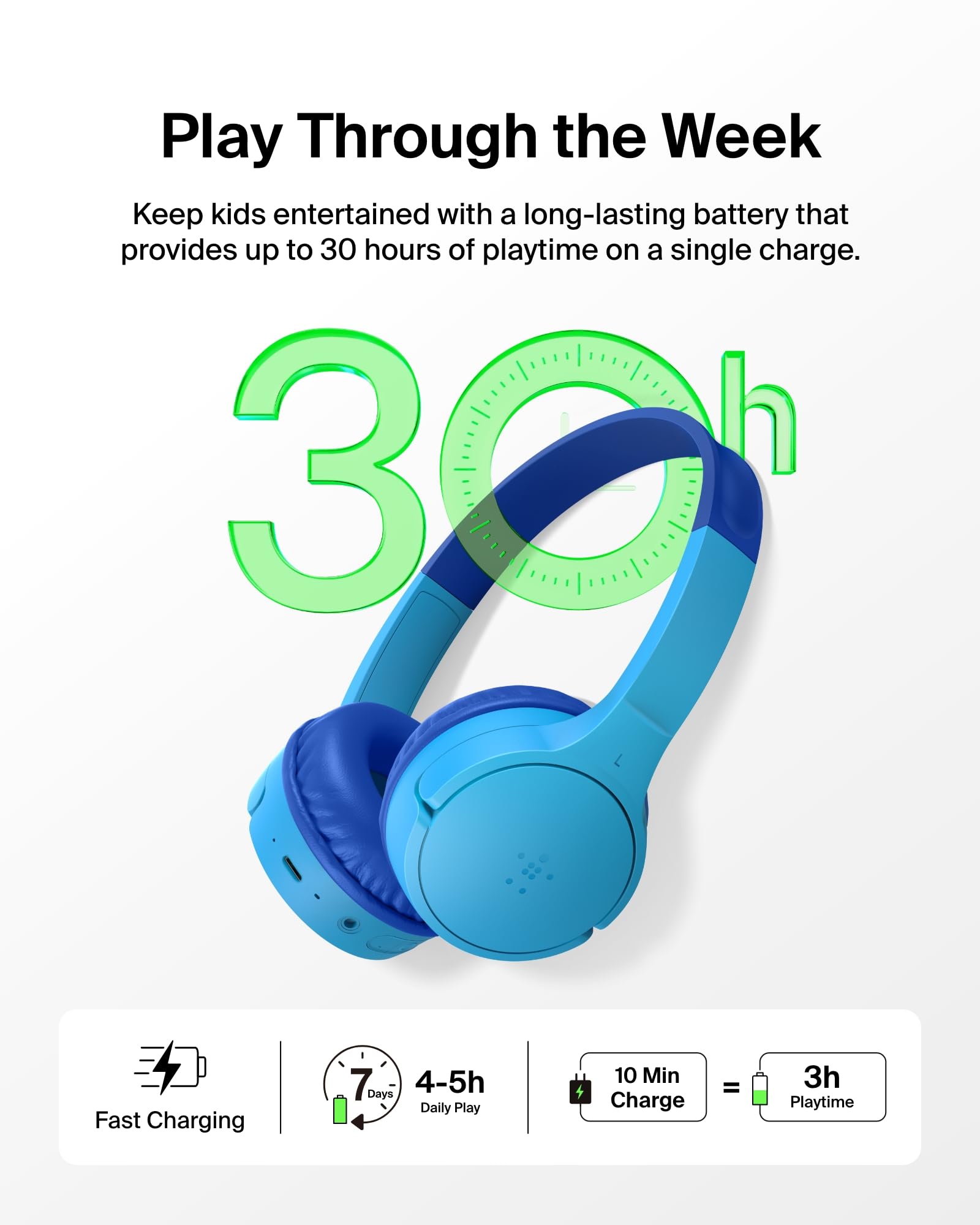 - BUILT-IN MICROPHONE & SAFE SOUND: Headset with built-in microphone for video & phone calls. Belkin Signature Sound is audio tuned, these kids bluetooth headphones wireless designed reach an 85dB volume limit to protect your little one's hearing.