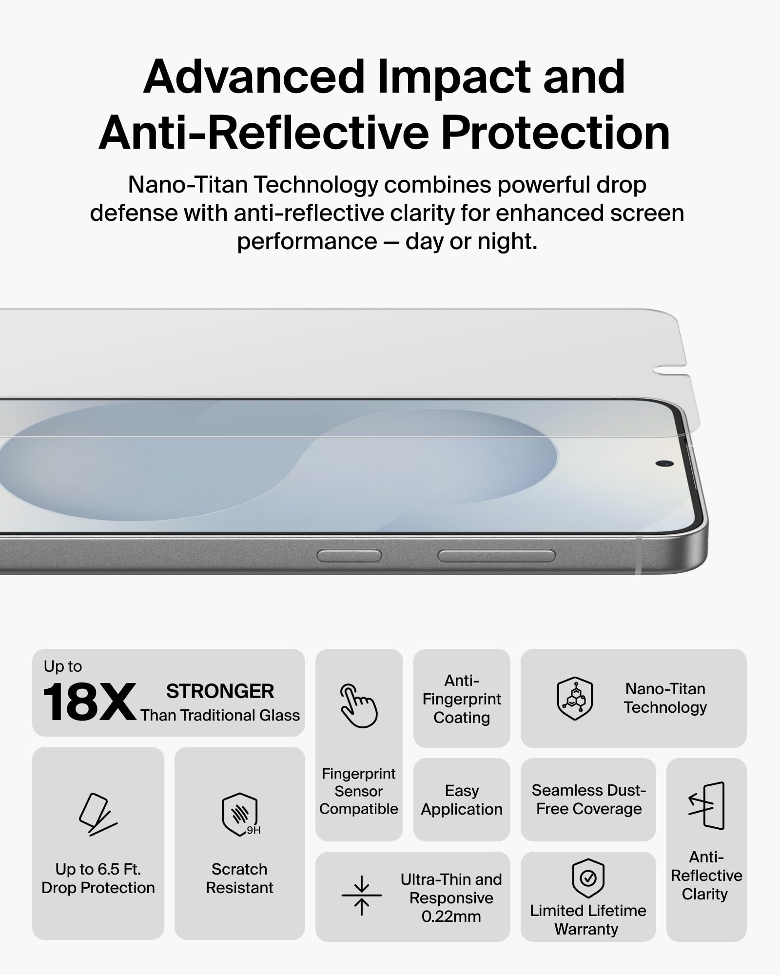 - NANO-TITAN TECHNOLOGY + ANTI-REFLECTIVE: Titan SmartShield glass provides superior scratch and impact resistance—up to 18x stronger than standard tempered glass.* Screen protector reduces glare, delivering up to 95% optical clarity for a crisp display.